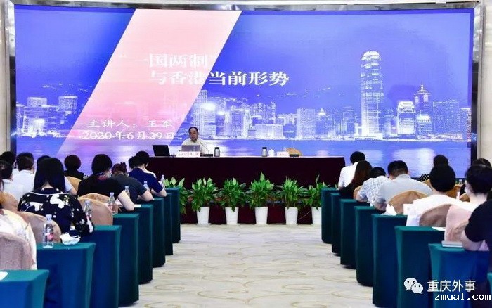 王军同志从香港修例风波的起源、性质、根源等进行了细致梳理,深刻剖析“一国两制”的发展方向,并探讨涉港国安法的出台与保持香港繁荣稳定等问题。本次报告会内容丰富,进一步加强了外事(港澳)干部对港澳工作的深入了解和把握,将促进重庆更好地贯彻落实中央有关港澳政策,进一步推进与香港密切联系,深化交流,“并船出海”,携手“走出去”,更多参与新时代国际合作。